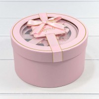 Коробки Круглые Набор 1/3 21*11,5 с окошком и бантом Розовый 1/18 Арт: 721303/1
