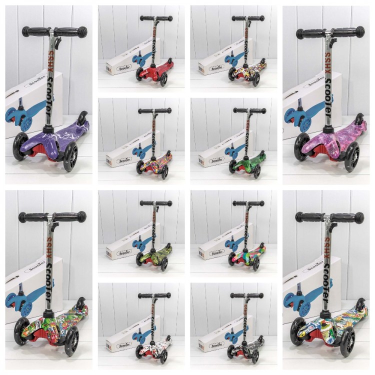 Самокат детский 3-х колёсный со светящимися колесами с принтом (ассортимент) 1/12 Арт: 000200-300